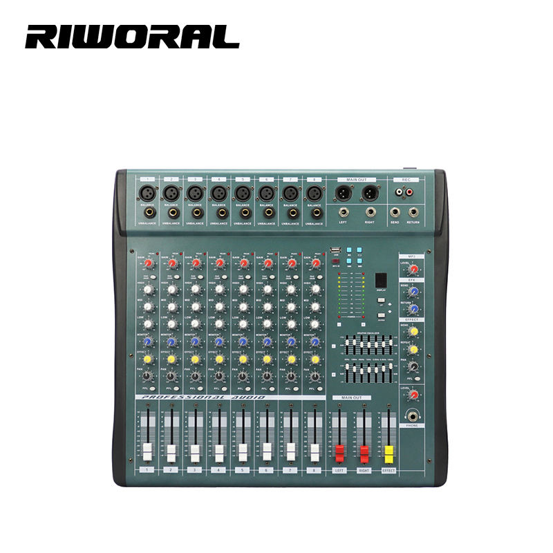 MX806 Console de mixage audio numérique DJ professionnelle à 8 canaux pour station de radio Construction métallique durable