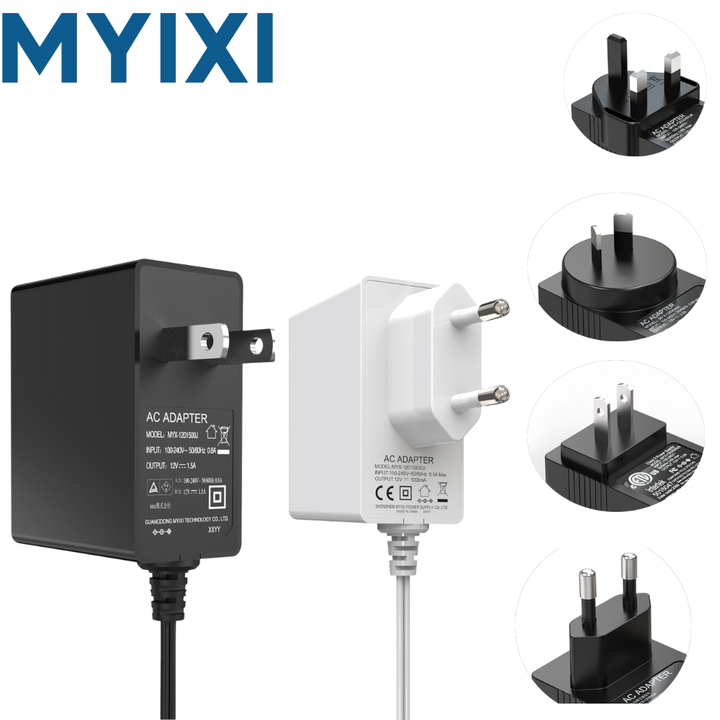 MYIXI Adaptateur secteur universel 5V 2A 2.5A 12V 1A 1AMP 850MA 10W 12W 13W 15W Prise EU UK avec câble long certifié KC Ktec