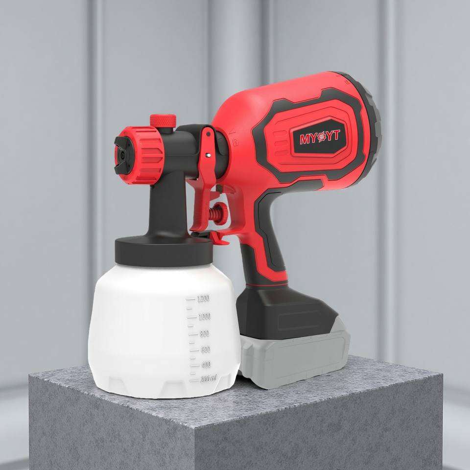 Pistolet de pulvérisation sans fil MYOYT AC, réservoir de peinture de 1200 ml, viscosité de 100 din/sec, buse de 2,5 mm, débit réglable, pistolet de pulvérisation à jet réglable
