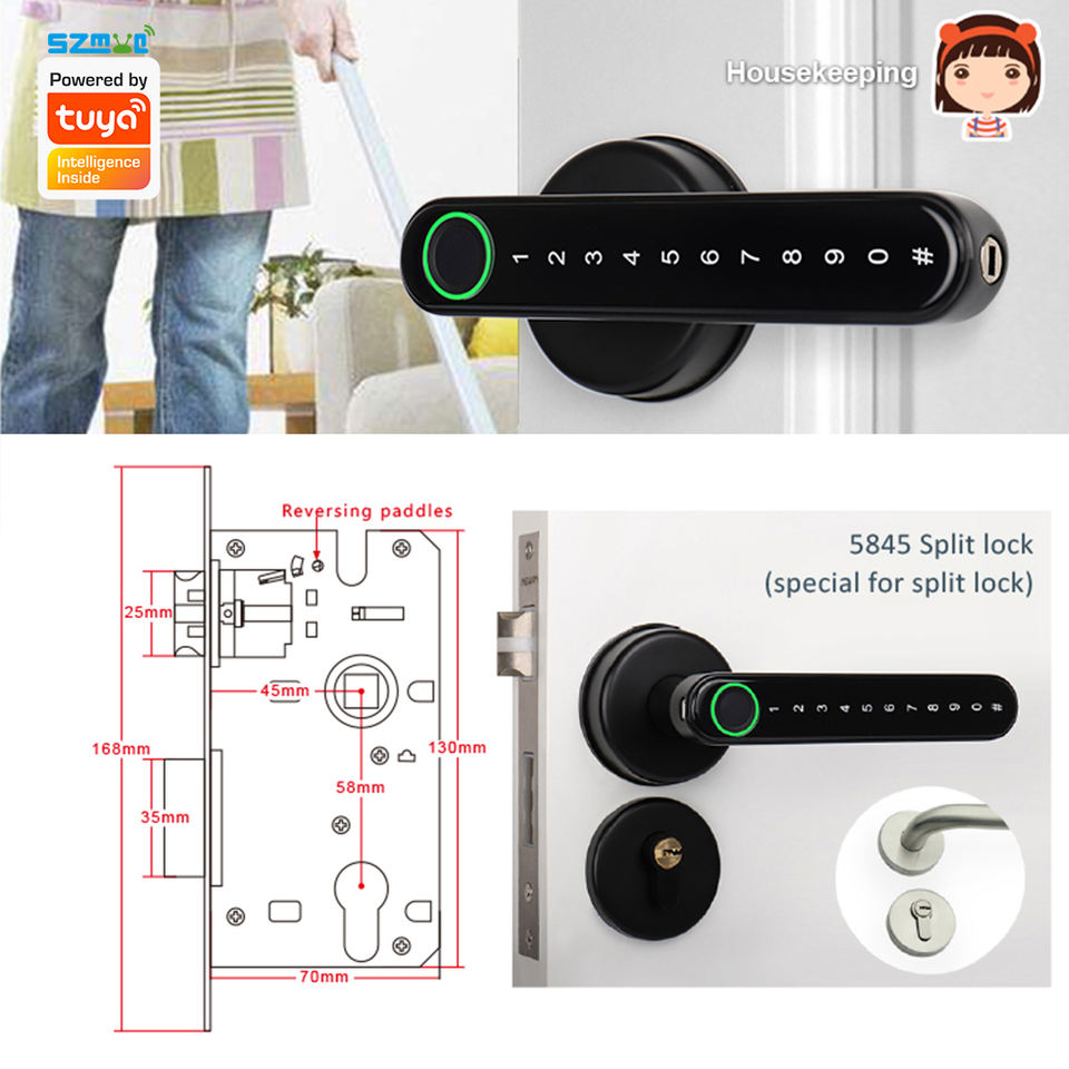 Serrure de porte intelligente MYQ Tuya, déverrouillage sans fil par empreinte digitale, mot de passe, clé mécanique pour porte en bois, bureau, hôtel