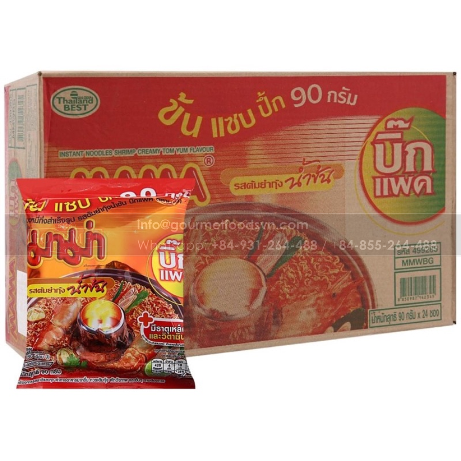 Nom du produit:MaMa Crevettes Creamy Tom Yum Flavour 90g x 24 Sachets x 6 Boîtes