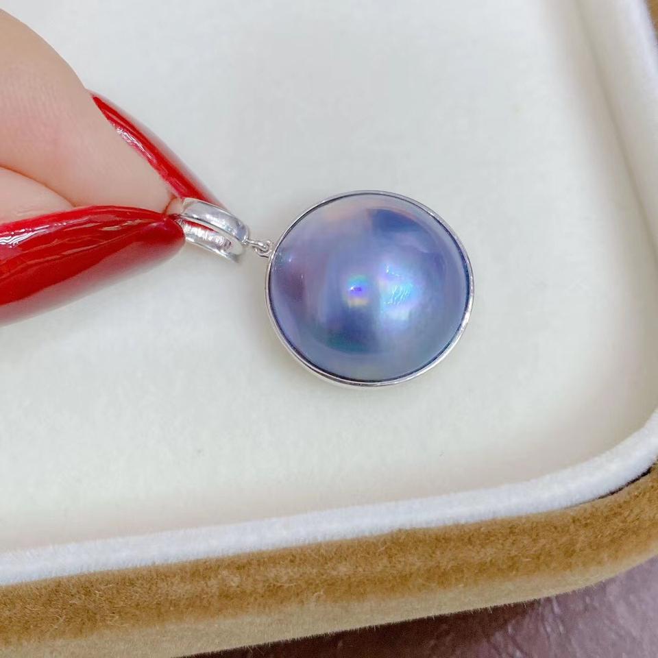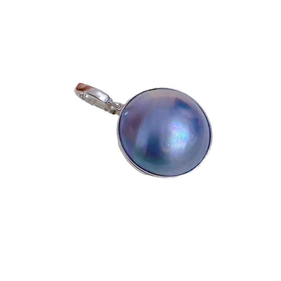 Pendentif solitaire Mabei World Starry Sky Blue en perle de culture Mabe ronde, boucle universelle en argent 925, unisexe
