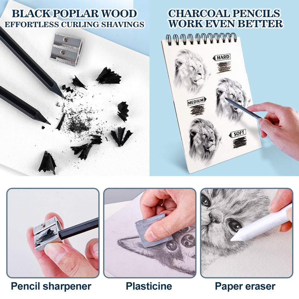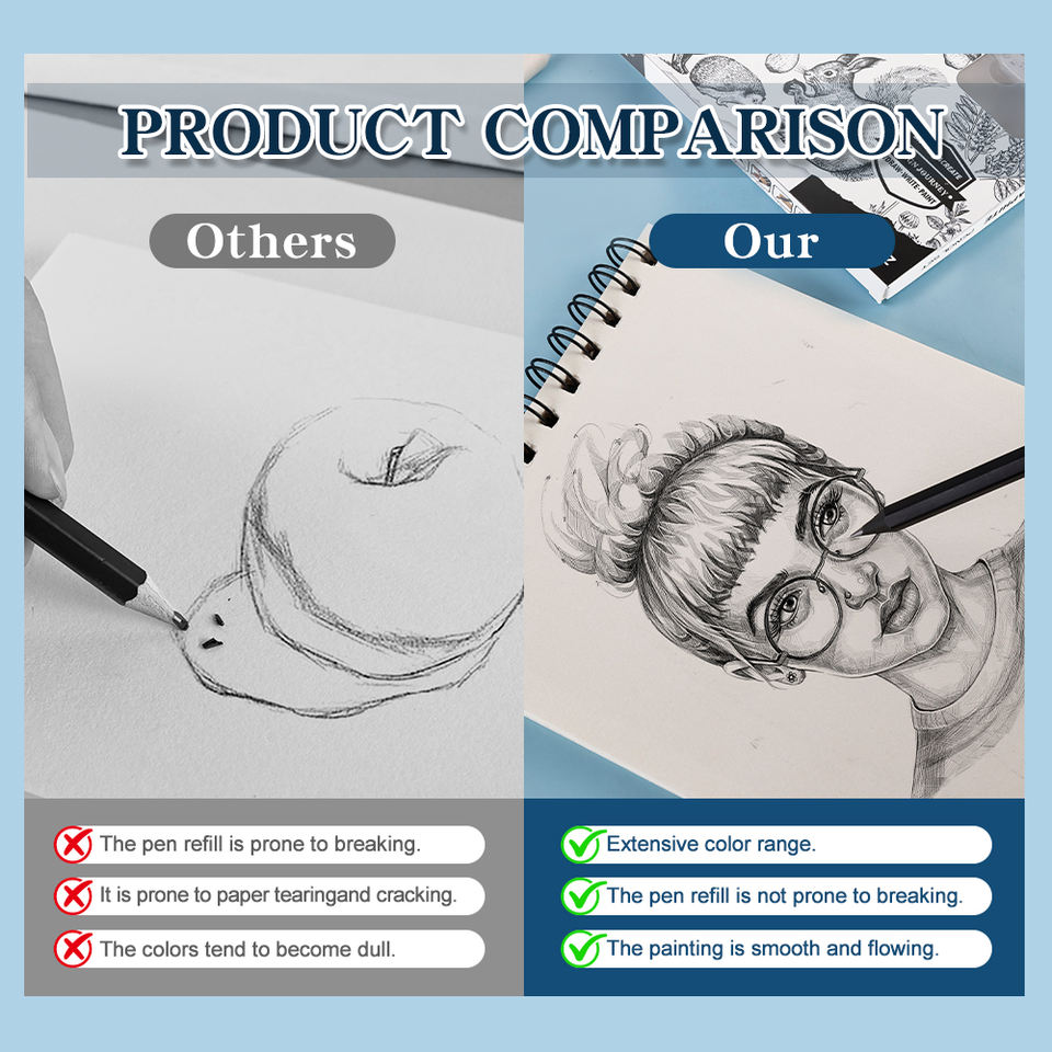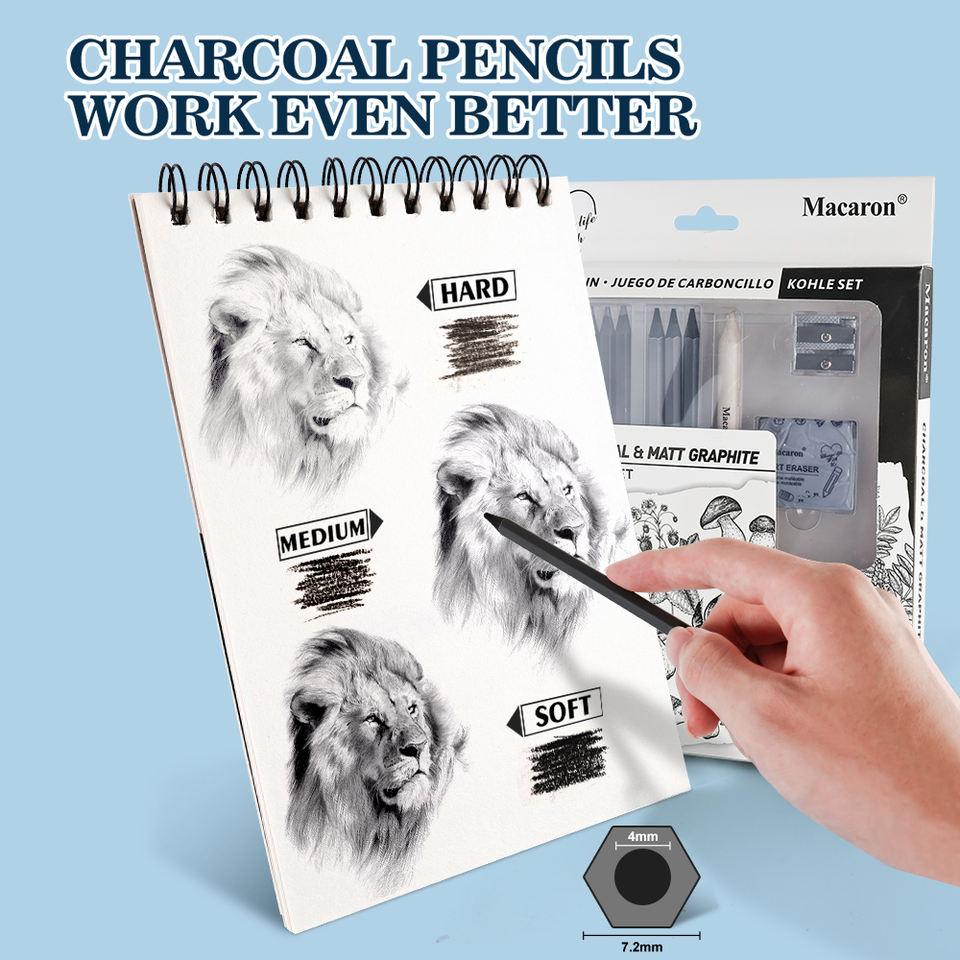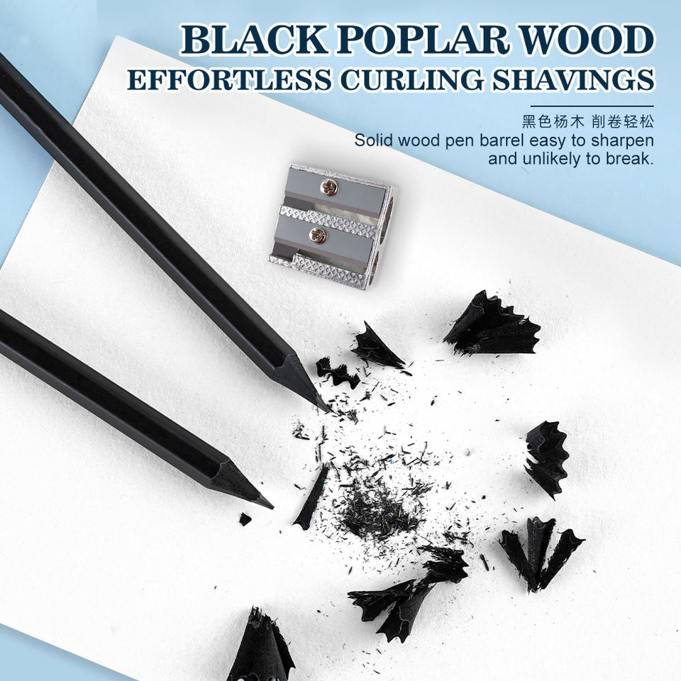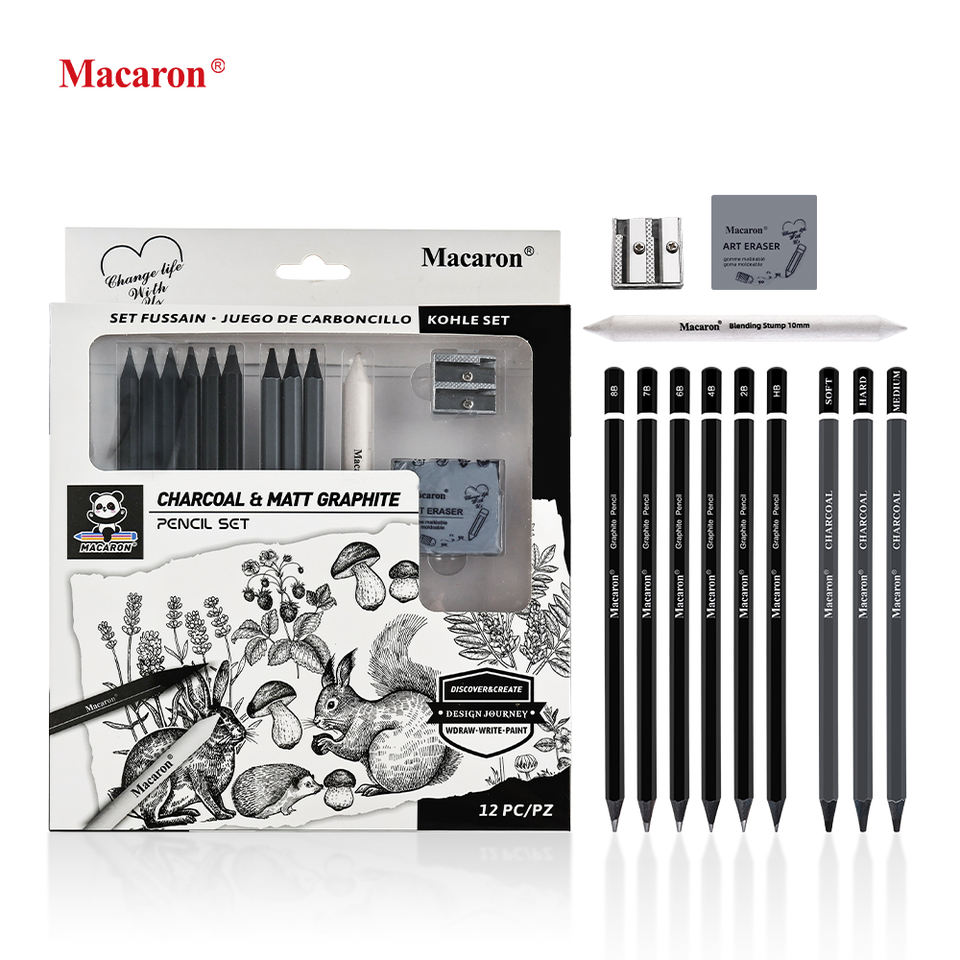 Macaron-Crayon Graphite de Haute Qualité, Crayon à Croquis en Bois de Peuplier Noir, Boîte en Pvc et Taille-Crayon Gomme, 12 Pièces