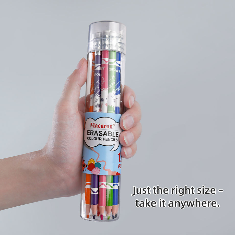 Ensemble de 12 crayons de couleur effaçables Macaron Crayons de couleur personnalisés avec gomme