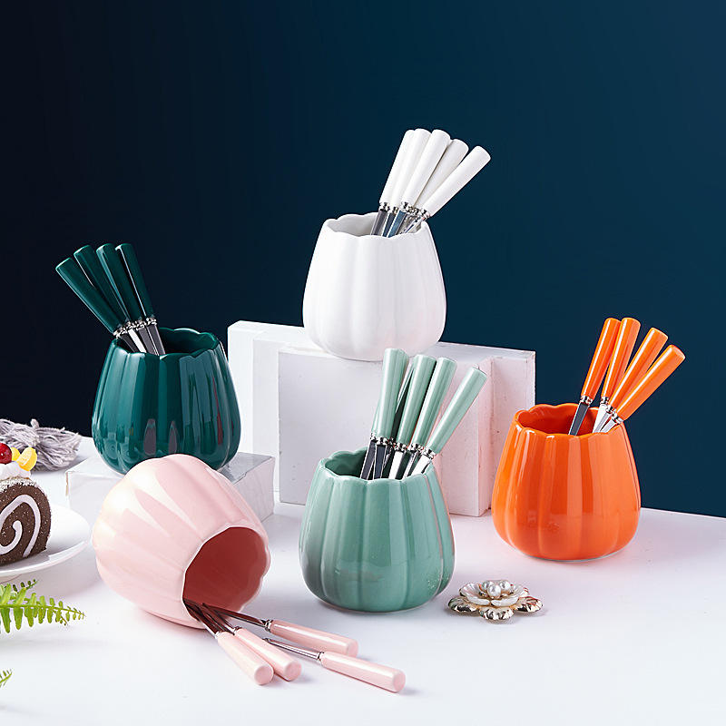 Product name:Macaron Pop Mini Fruit Fork Ceramic Jar Set