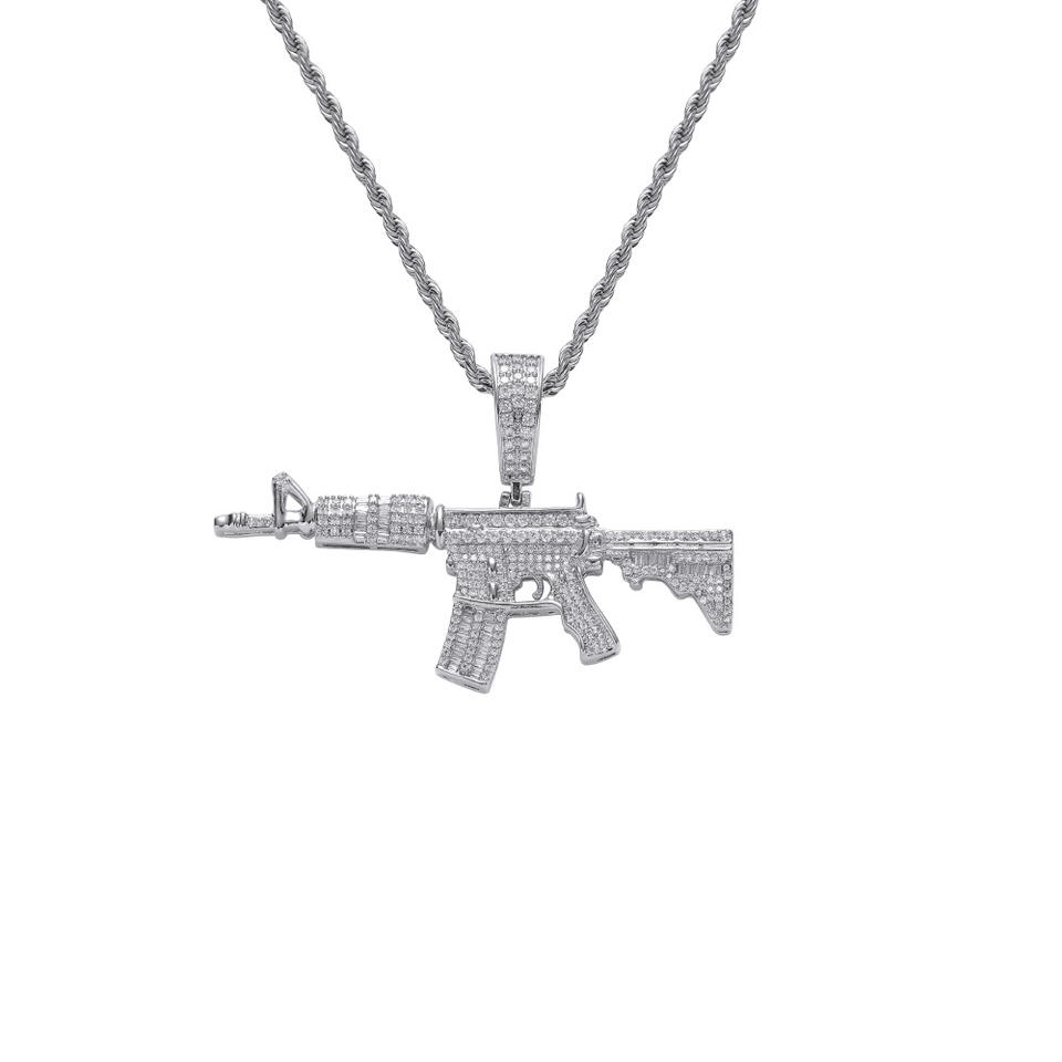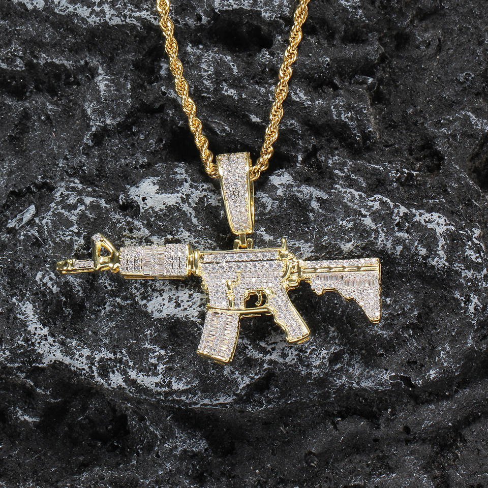 Collier pendentif mitrailleuse, chaîne superposée Hip Hop pour homme, bijoux en cuivre incrustés de CZ, style Iced Out