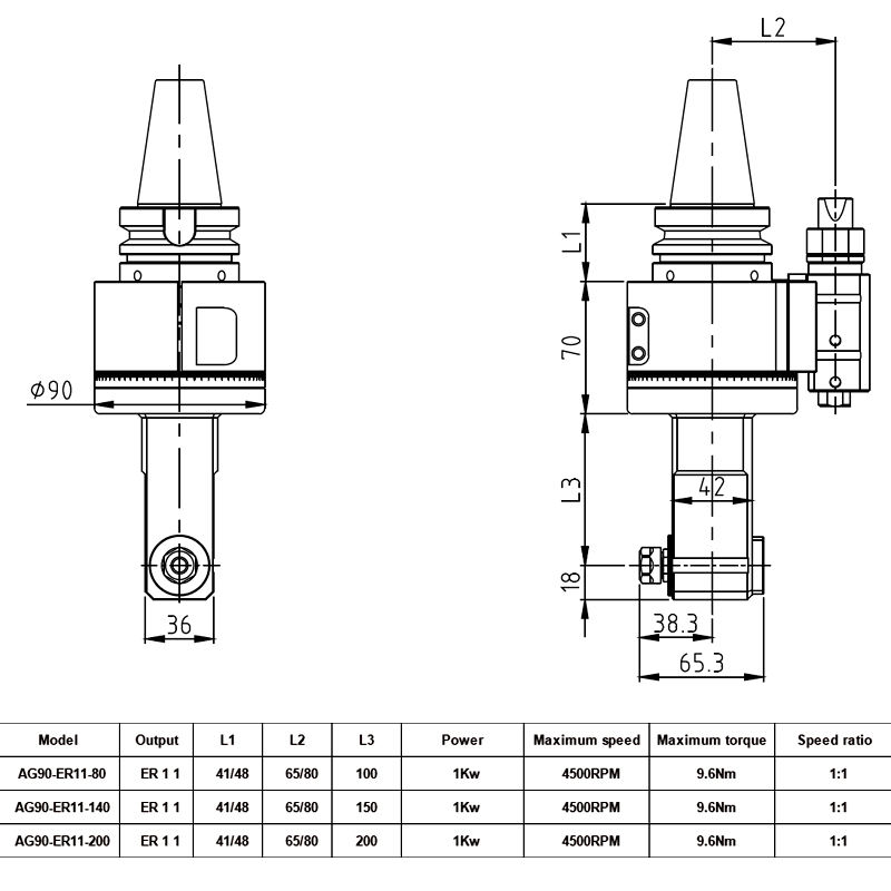 Mandrin pour machines-outils ER11/ER16/ER20/ER32/ER40, tête d'angle CNC à 90 degrés, tête de fraisage horizontale BT40, tête de fraisage à angle droit latéral