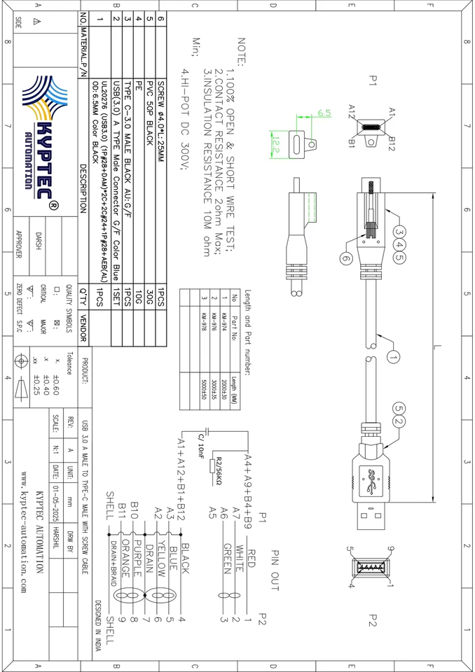 Câble USB 3.0 pour vision industrielle, mâle A vers mâle Type C avec connecteur à vis pour caméra industrielle, transfert de données haute vitesse