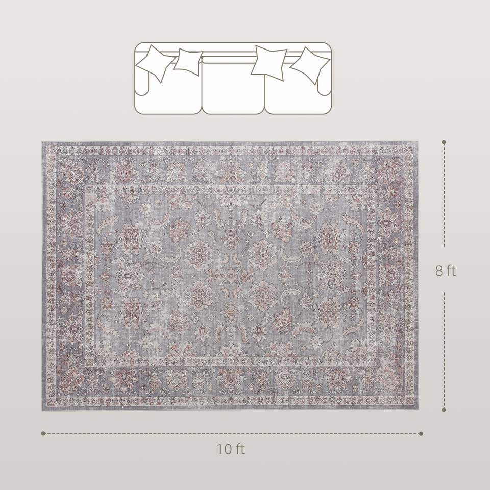 Tapis de sol traditionnel à fleurs antidérapant lavable en machine 8x10 gris brun pour salon et chambre à coucher