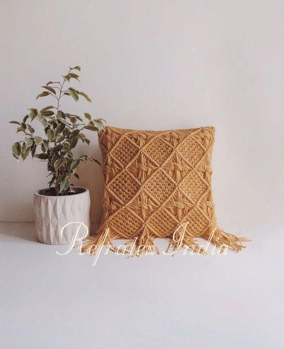 Housse de coussin en macramé, fournisseur en vrac et fabrication par réfractex inde fabriqué en inde pour la décoration en macramé