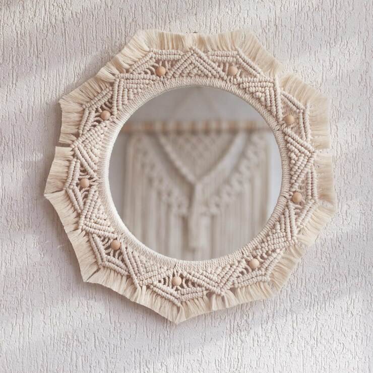 Macrame Nursery Wall Mirror Modern Mirror Handmade Cotton Cord Soft Round Wall Decor Custom Size and Color Available