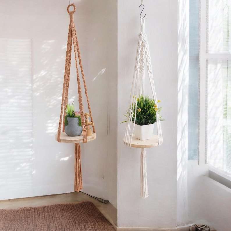 Cintre pour plantes en macramé avec étagère pour affichage décoratif intérieur et extérieur Décoration de mariage d'anniversaire Ramadan