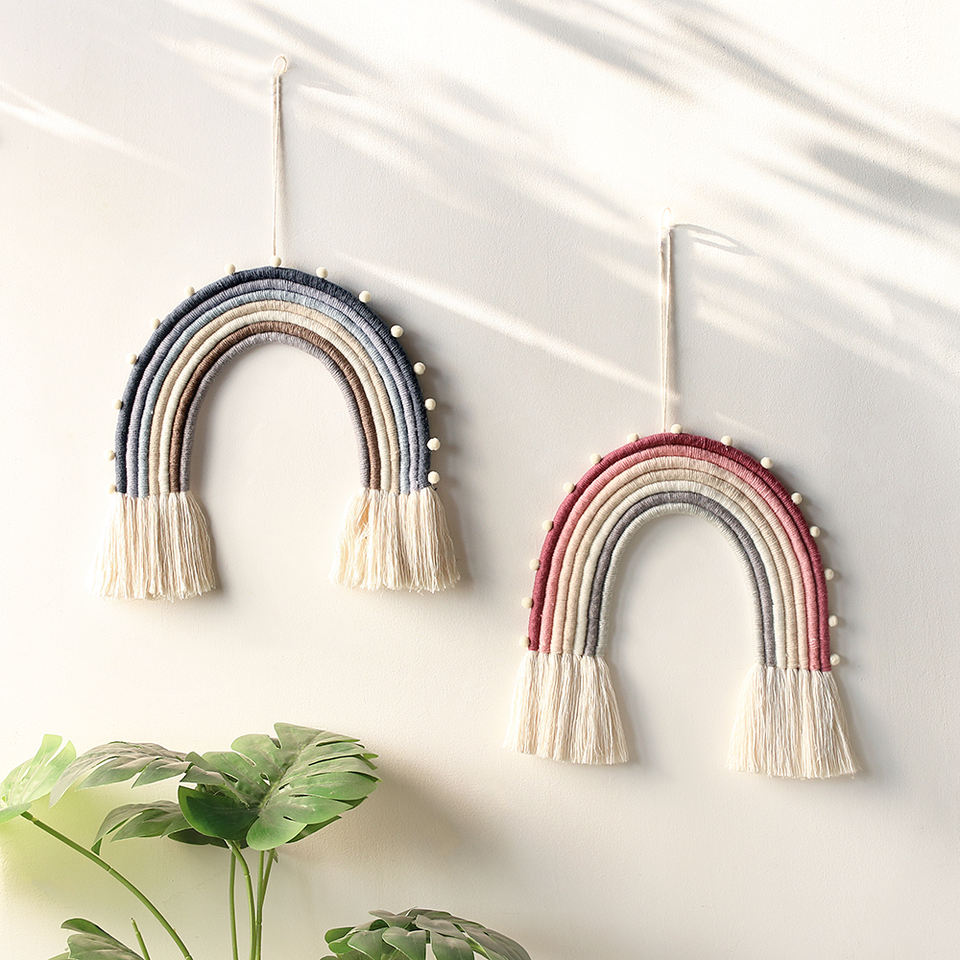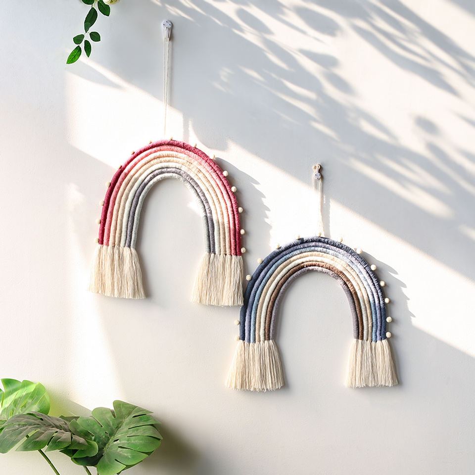 Macramé arc-en-ciel mural suspendu Boho décor de maison chambre gland attrape-rêves pépinière enfants bébé cadeau de douche