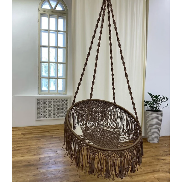 Fauteuil suspendu rond en macramé, hamac en coton pour la détente en extérieur et le jardin