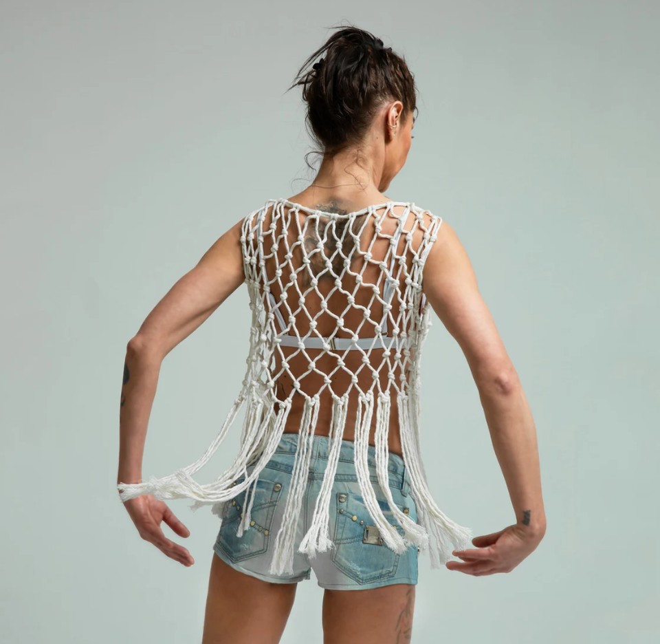 Gilet en macramé couleur Beige, haut à tricoter, Makramee-Kleid, haut en macramé, haut court de plage en macramé pour femme
