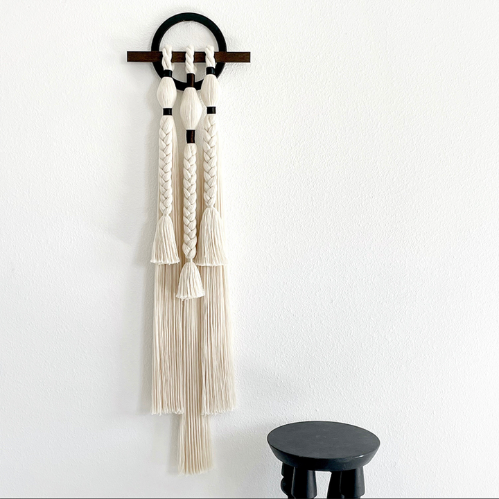 Suspension murale en macramé, corde de coton faite à la main, décoration murale bohème, suspension pour cuisine, chambre à coucher, tissage artisanal, noir et blanc