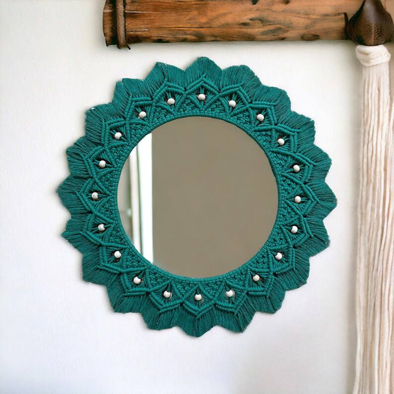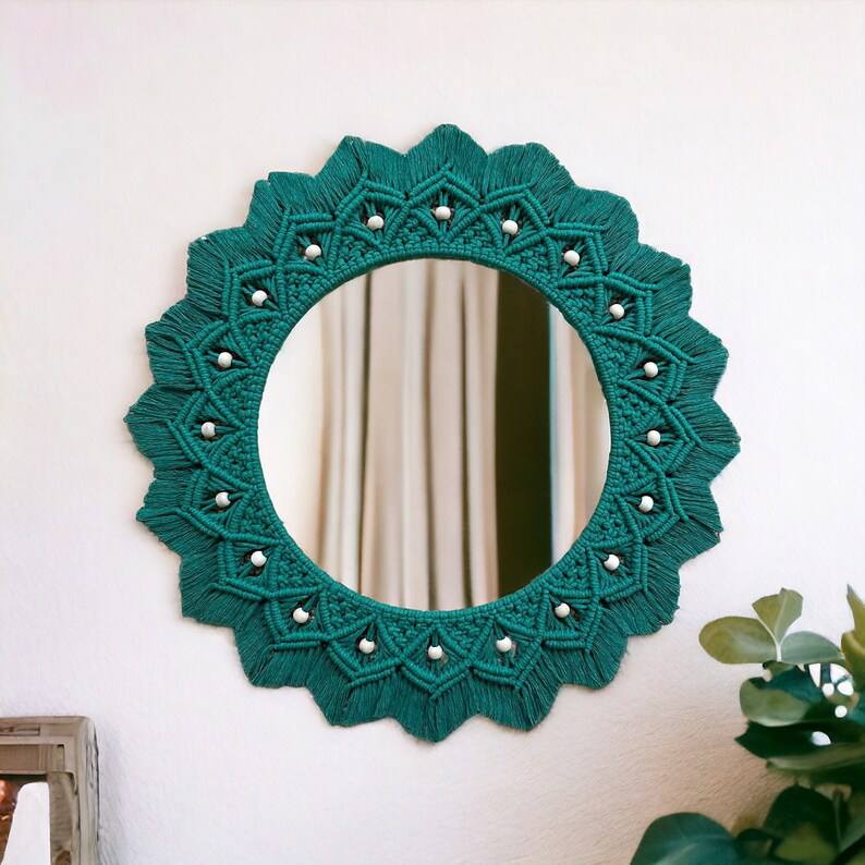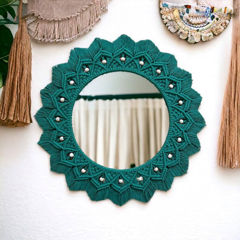 Miroir mural rustique macramé raphia jonc de mer avec cadre en coquille pour décoration intérieure Boho