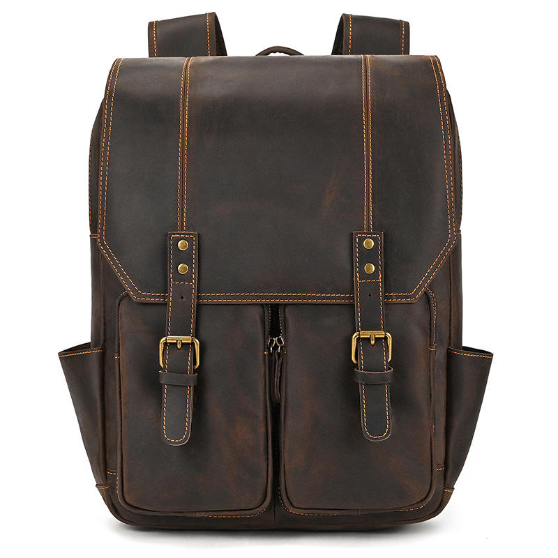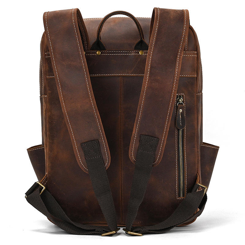 Mad Horse 16 pouces Top Grain peau de vache pour hommes en cuir véritable grande capacité sac à dos avec fermeture à glissière sac de voyage décontracté