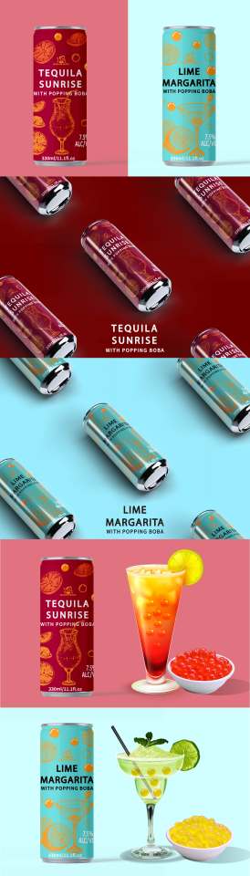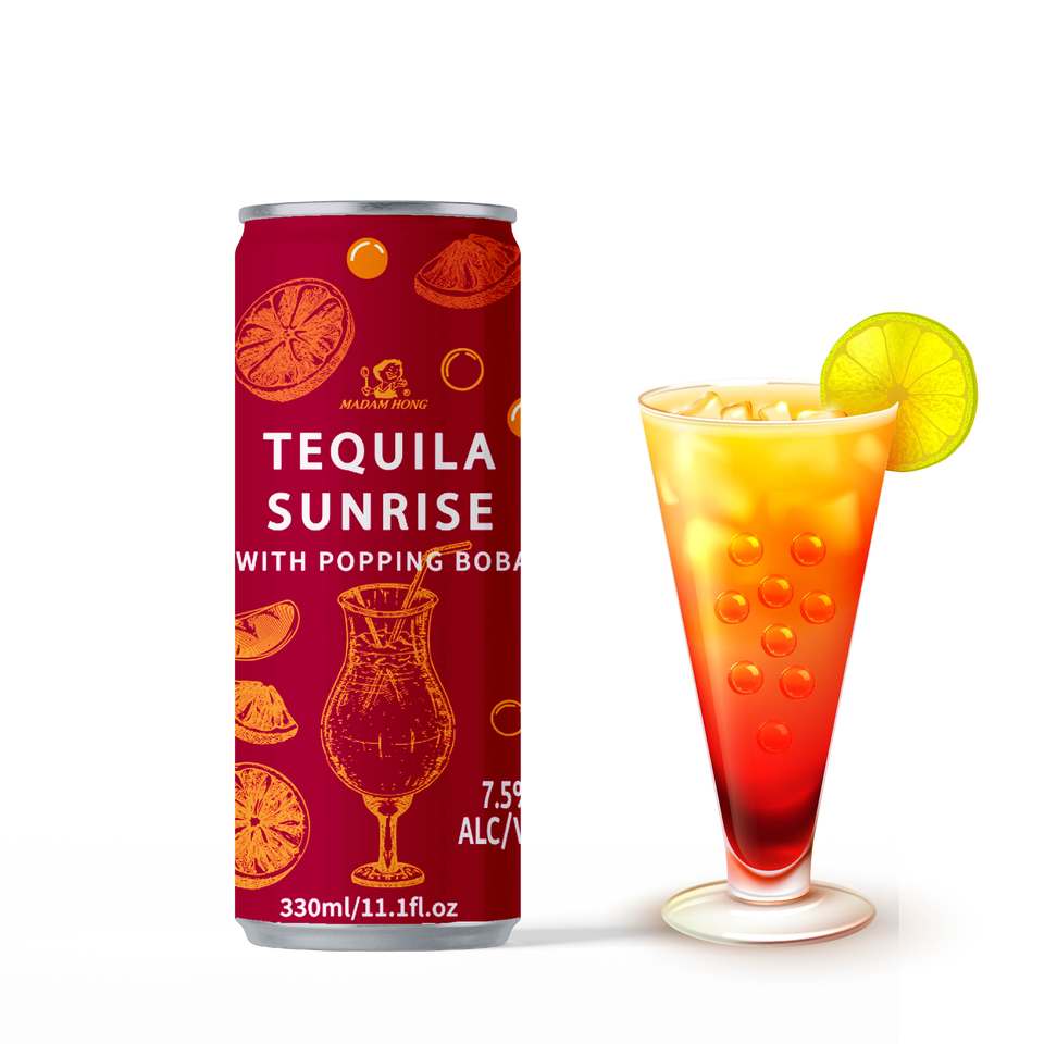 Madam Hong Ready to Drink Long Drinks Cocktail Boba Tea 330ml Can (Tinned) Lime Margarita Tequila Sunrise Flavors 7.5% Alcohol