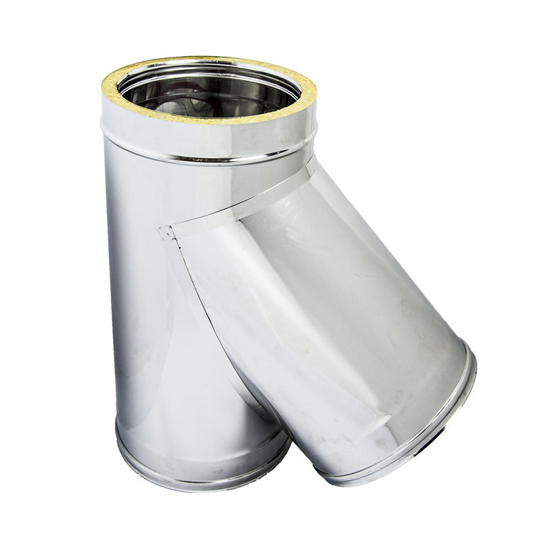 Fabriqué en Italie, gamme de diamètres de 80 à 400 mm, épaisseur de 25 mm, acier inoxydable 316/304, joint à 45 degrés entre le conduit principal et le conduit de fumée