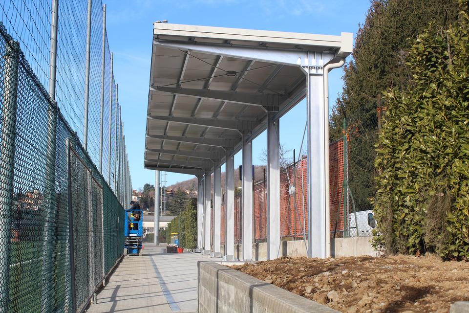 Structure de surplomb de couverture de support en acier galvanisé à chaud conçue sur mesure pour les produits de sport et de divertissement de marque CETA Italie