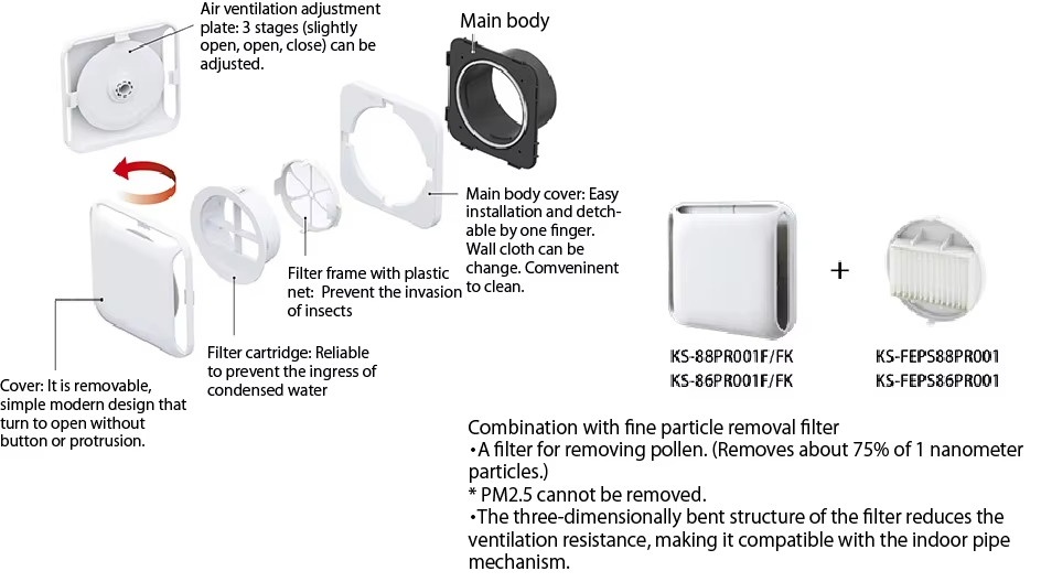 Purificateur d'air, humidificateur, ventilateur de refroidissement de haute qualité, fabriqué au Japon, filtre à air, montage mural, couvercle amovible