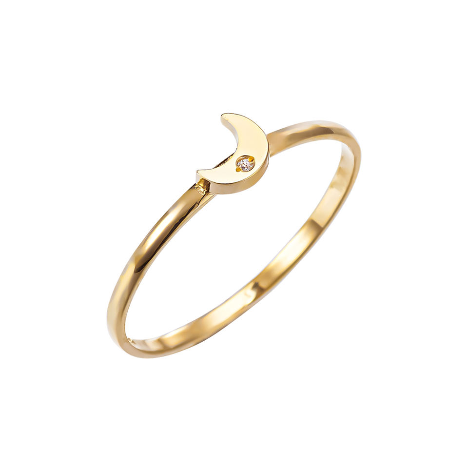 Fabriqué En Corée NeeGee Bijoux Femmes Véritable Bague En Croissant De Mauve En Or 14K Avec Une Forme De Lune Design Et Zircon Cubique