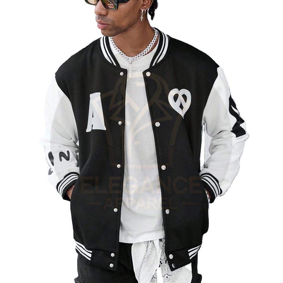 Fabriqué au Pakistan sur mesure couleur unie Patchwork bouton avant manches longues poche Simple décontracté hommes collège Baseball vestes