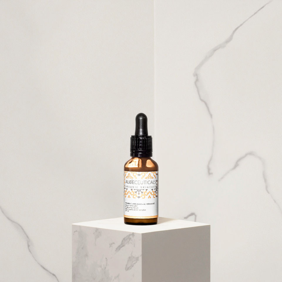 Fabriqué en Espagne, marque Aleceuticals Healthcare S.L, sérum éclaircissant pour la peau à l'aloe vera, à la vitamine C, aux algues rouges et à l'acide férulique, 30 ml