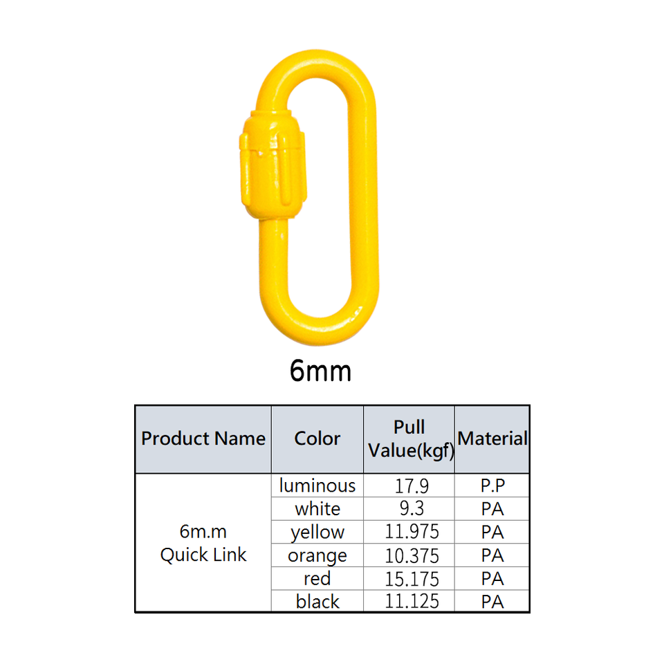 Fabriqué à Taiwan Offre Spéciale Mousqueton à maillons rapides de 6mm de couleurs multiples Mousqueton à vis de forme ovale