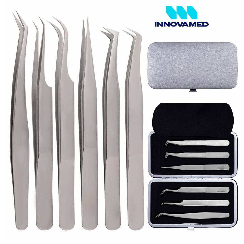 Fabriqué au Pakistan, 6 pièces, pinces à épiler en acier inoxydable de qualité supérieure, fabrication artisanale, service OEM, pinces à épiler pointues pour les extensions de cils