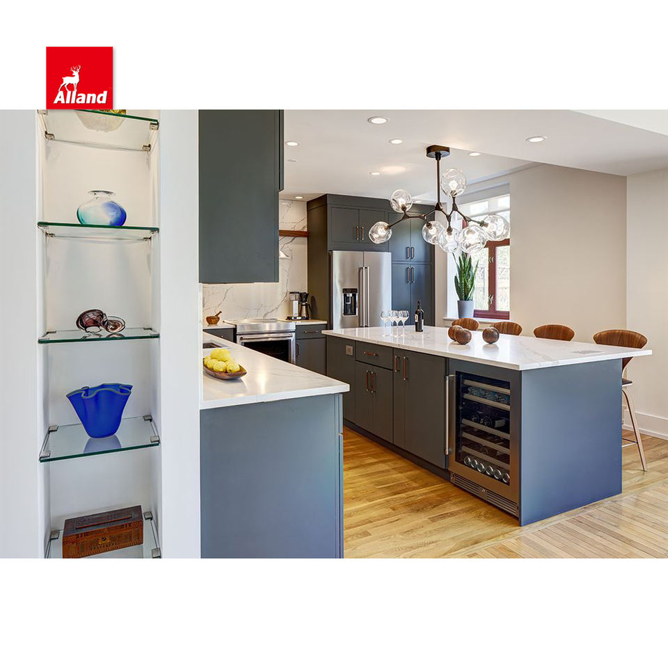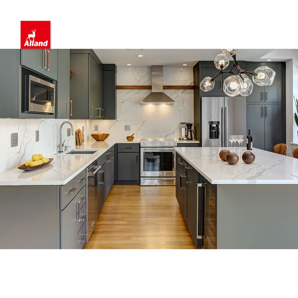 Fabriqué en Chine Panneau shaker avec finition peinture noir graphite avec cadre Panier en bois dur Armure de parquet Armoires de cuisine