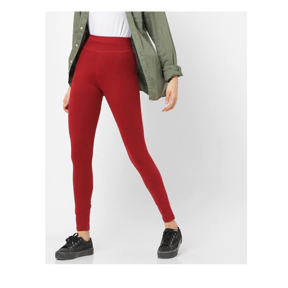 Made in India Summer Eco-Friendly Breathable Premium Quality Plus Size Women's Leggings in Maroon Color Spandex/Cotton