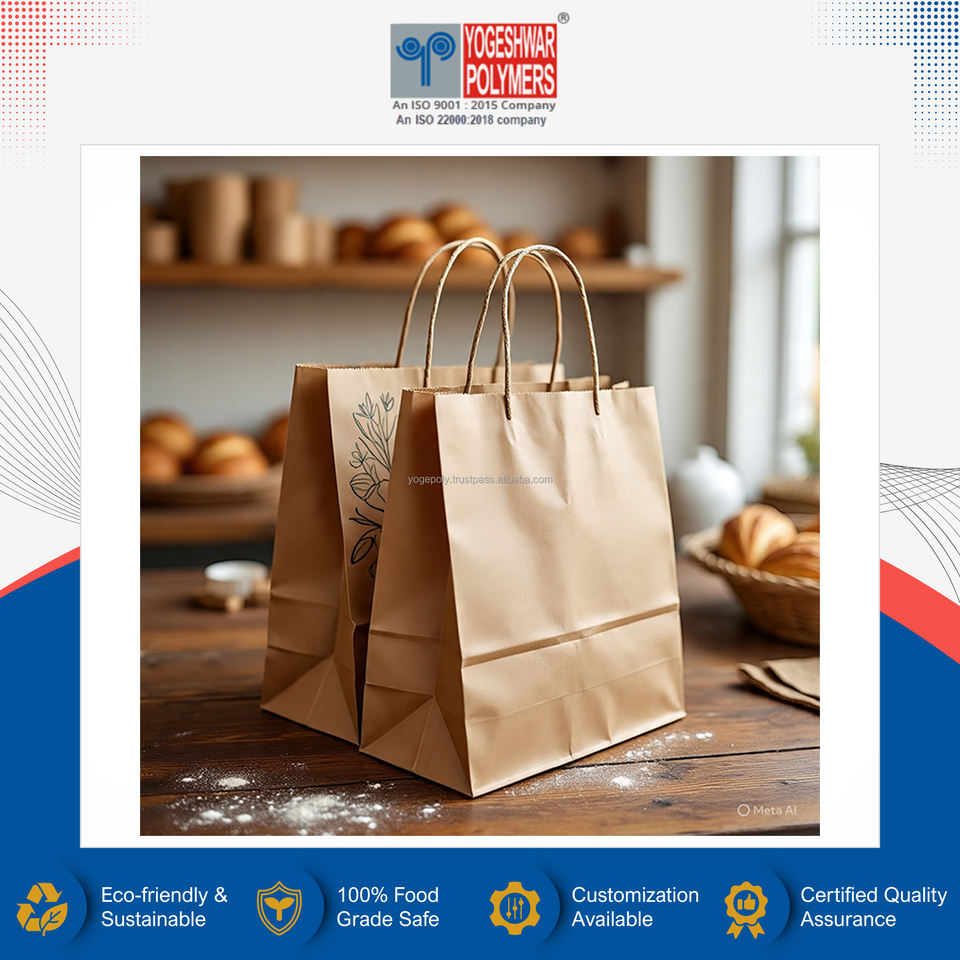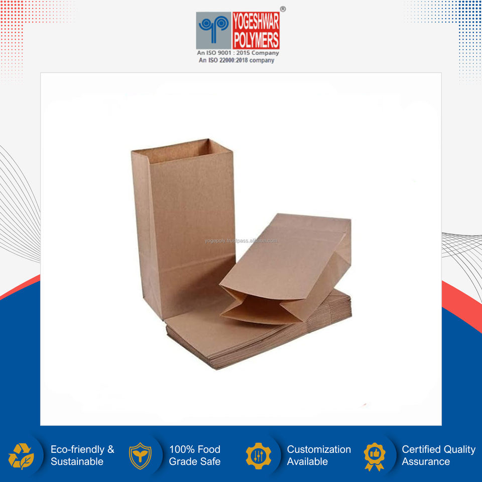Fabriqué en Inde, sac en papier kraft de haute qualité, taille personnalisée, multicolore, qualité alimentaire, fond carré, avec poignée