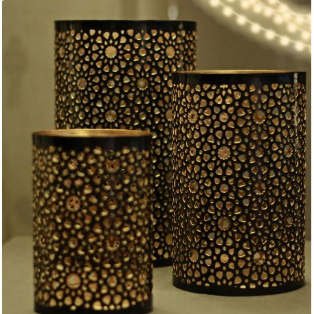 Ensemble de bougeoirs Huricane en laiton antique fabriqué en Inde, avec revêtement coloré, style tendance, à vendre