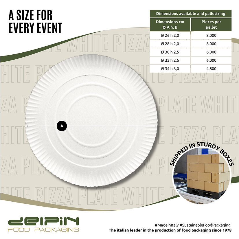 Assiette à pizza ronde en carton blanc jetable écologique personnalisable Made in Italy taille différente prête à expédier