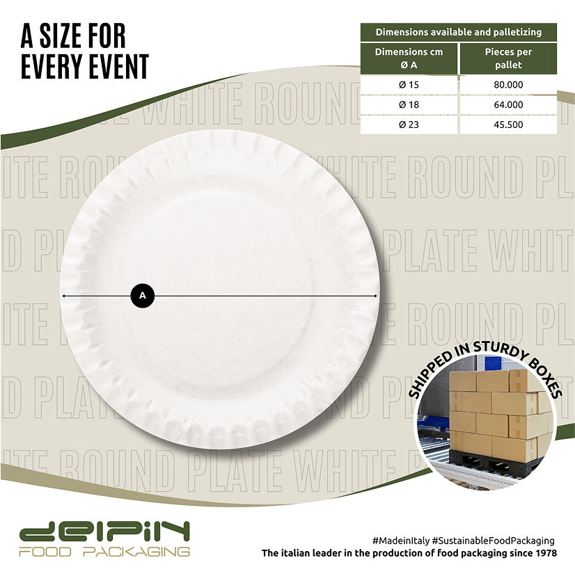 Fabriqué en Italie Plaque de carton ronde blanche jetable écologique personnalisable Taille différente prête à expédier