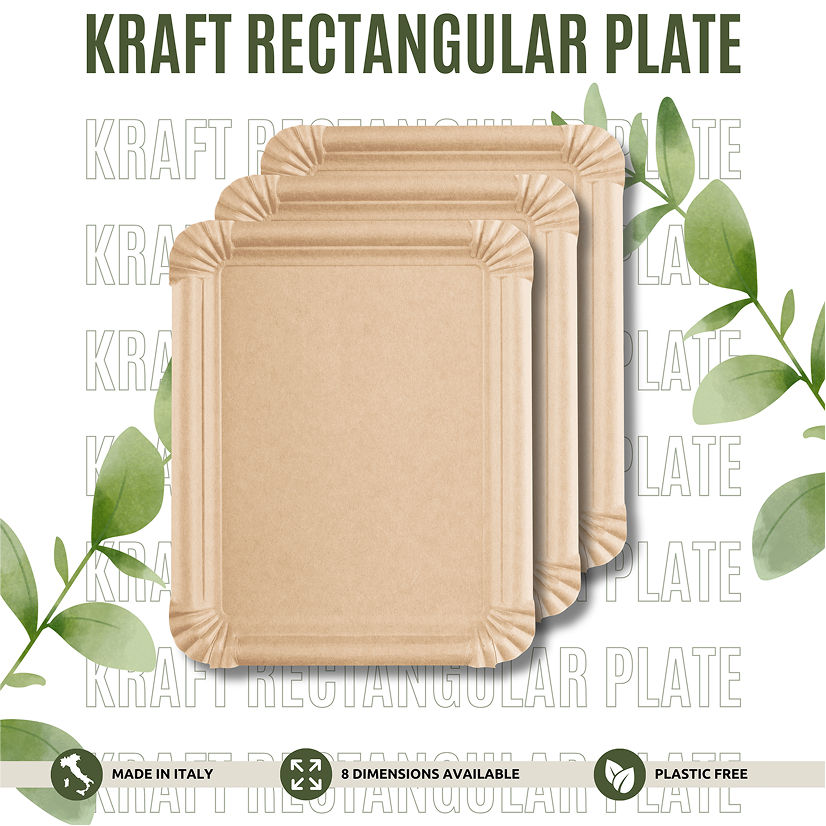 Assiette en carton kraft rectangulaire jetable écologique personnalisable fabriquée en Italie, différentes tailles, prête à être expédiée