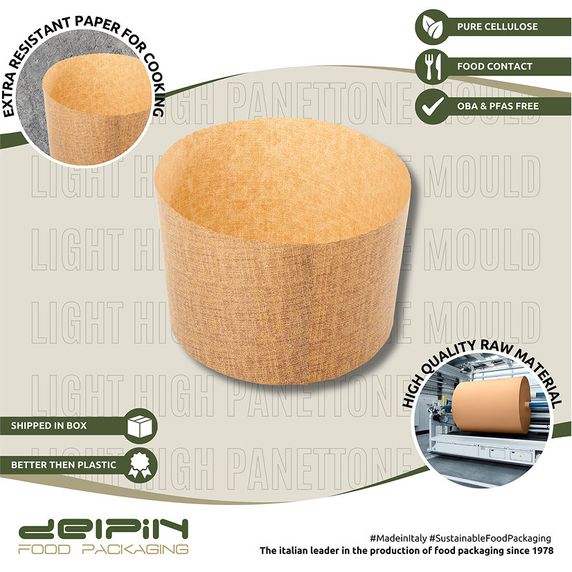 Fabriqué en Italie Moules à haute panettone personnalisables en cellulose pure antiadhésive allant au micro-ondes et au four