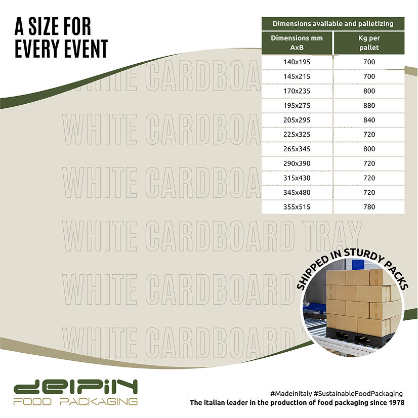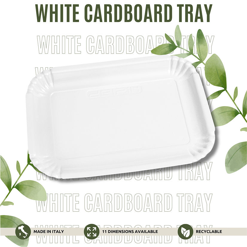 Fabriqué en Italie Plateau en carton blanc rectangulaire jetable écologique de différentes tailles prêt à expédier