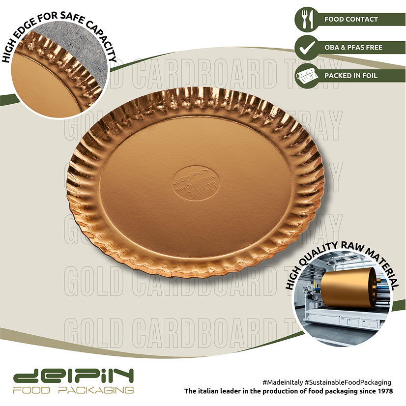 Plateau en carton doré rond jetable écologique fabriqué en Italie, différentes tailles, prêt à expédier