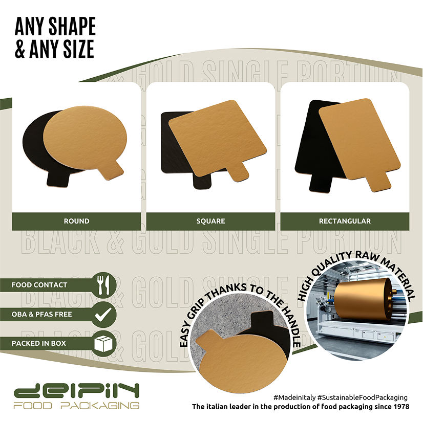 Fabriqué en Italie laminé jetable rond noir et or Mini planche à gâteau dessert monoportion carton taille différente