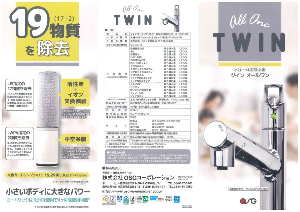 Japanese-Made TWIN ALL ONE Manual-Powered Household Water Purifier Dispenser Built-In Filter Water Treatment Appliance