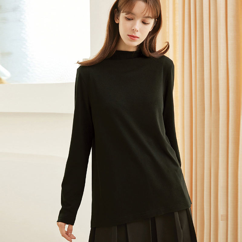 Fabriqué au Vietnam IntheK demi-cou A-ligne coupe régulière Muni basique laine mélangée sieste décontracté hiver T-Blouse