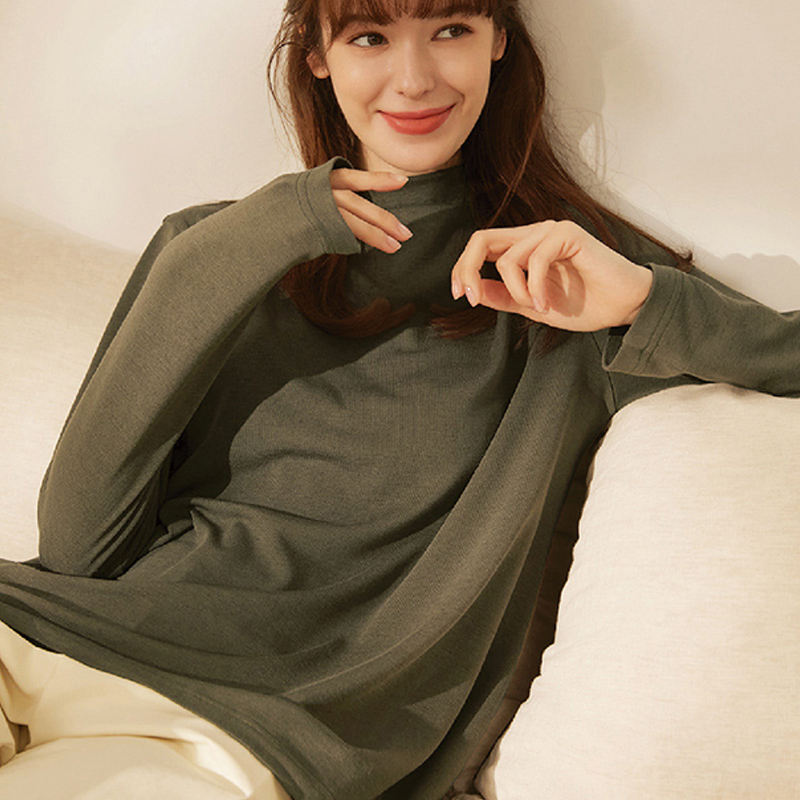 Warm napping T-shirt, half-neck A-line loose fit.