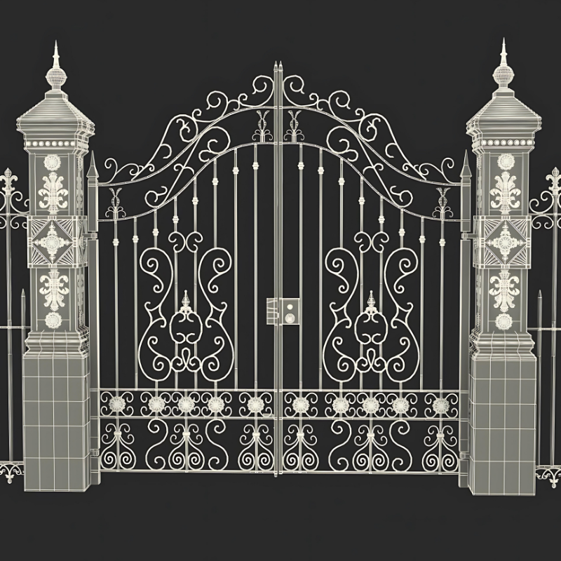 Made in Vietnam wrought iron gate with elegant scrollwork and protective finish for outdoor driveway, garden, or villa entrance