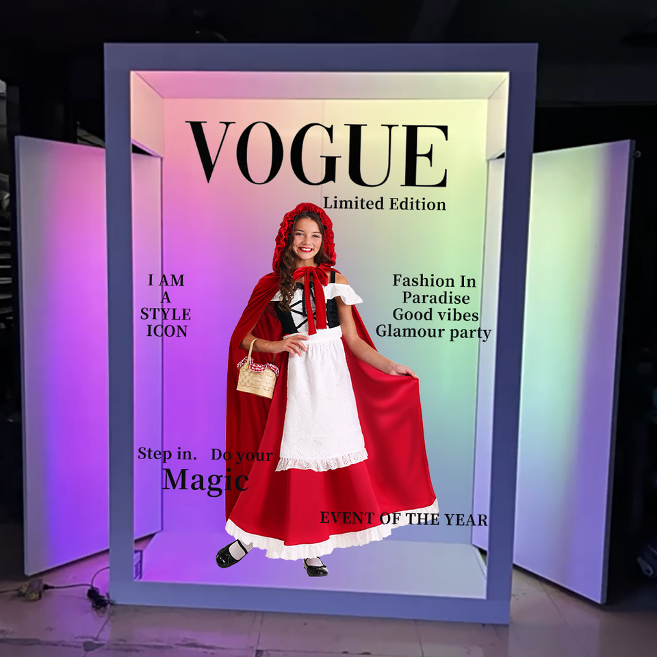 Boîte de photomaton de mariage en tissu style magazine Vogue