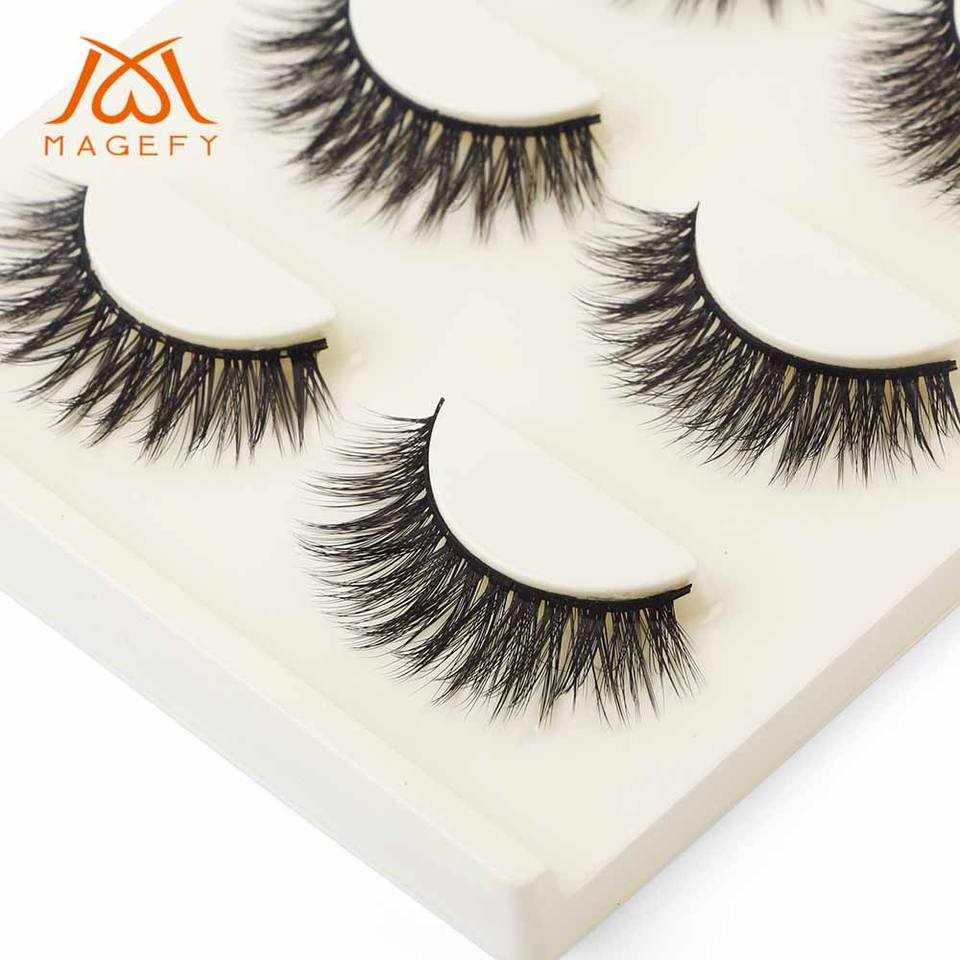 Magefy Faux Cils en Bande Volume Naturel, Cils Fins et Densément Courbés, Lot de 3 Paires, Vente en Gros, Cils Effilés, Kits de Faux Cils