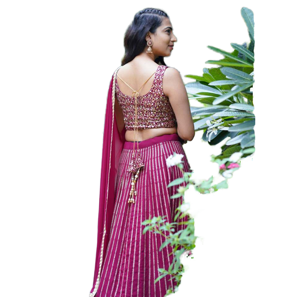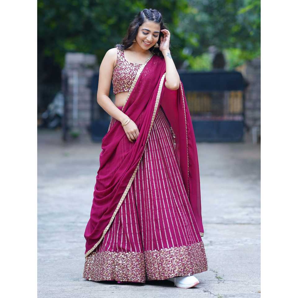 Magenta Dazzling Sequins Georgette Lehenga Choli for Engagement or Wedding Wear