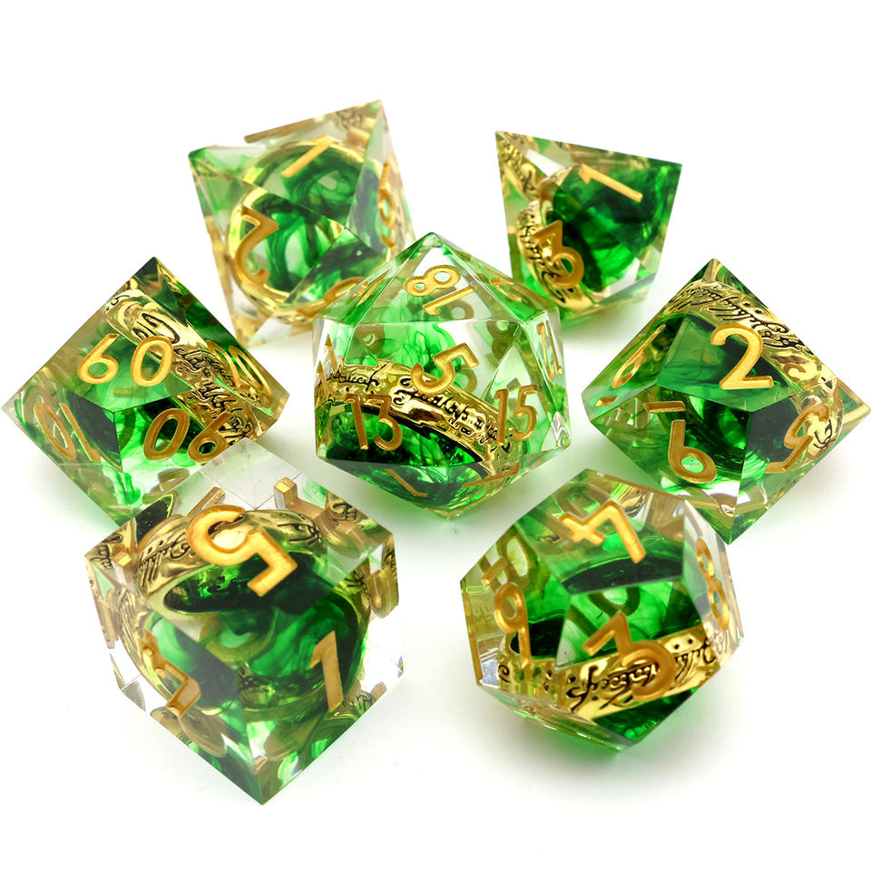 Ensemble de dés DND Magic Golden Rings, 7 dés en résine à bords tranchants pour jeux de rôle Dungeons Dragons D20 D12 D10 D8 D6 D4 D100